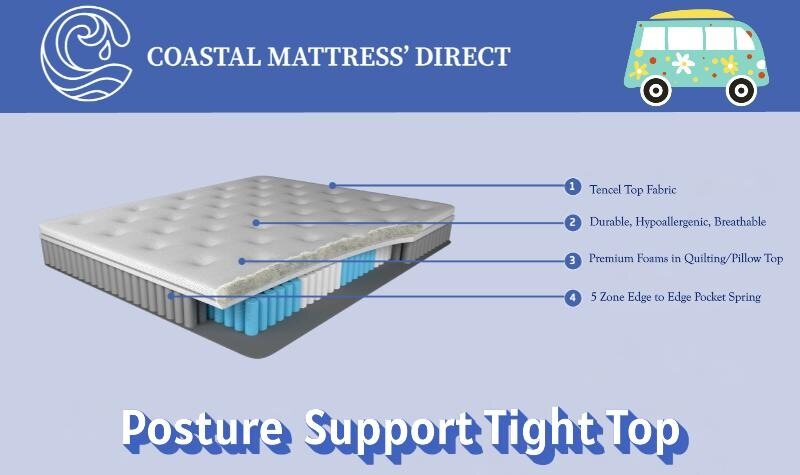 Designed for travellers who love the open road, our motorhome mattresses combine luxurious comfort with lasting durability. Built to withstand daily use and long journeys, these mattresses are made-to-measure to perfectly fit your motorhome’s sleeping area. We use premium foams and breathable fabrics to deliver ideal support, ventilation, and long lasting resilience paired with our specialised 5 zone pocket coil system further enhances comfort by supporting each part of the body exactly where it’s needed. Whether you’re touring the East Coast or living full-time on the road, our motorhome mattresses provide the support and relaxation you need after a long day of driving — so you can wake up refreshed and ready for your next adventure.